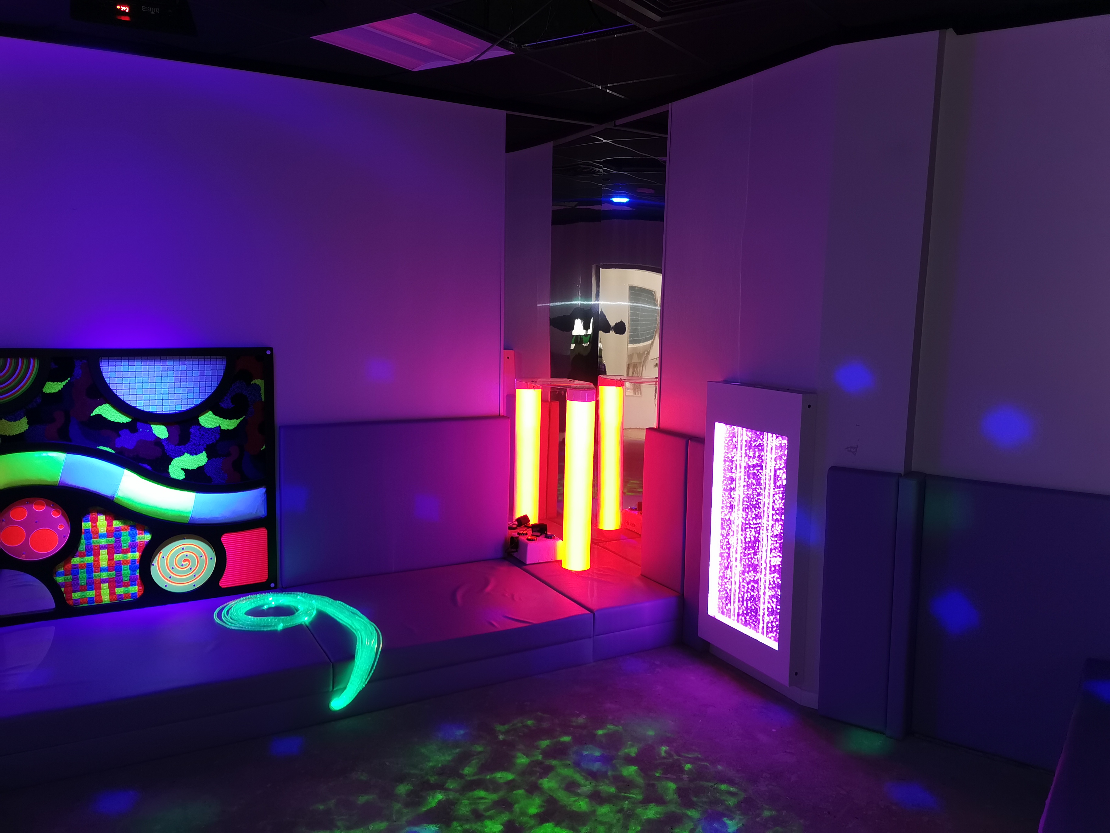 Sensory rooms promote emotional regulation and mindfulness, supporting individuals experiencing heightened anxiety or sensory sensitivities. By using calming visuals, ambient sounds, and soothing tactile features, we help create safe spaces for reflection and self-regulation.